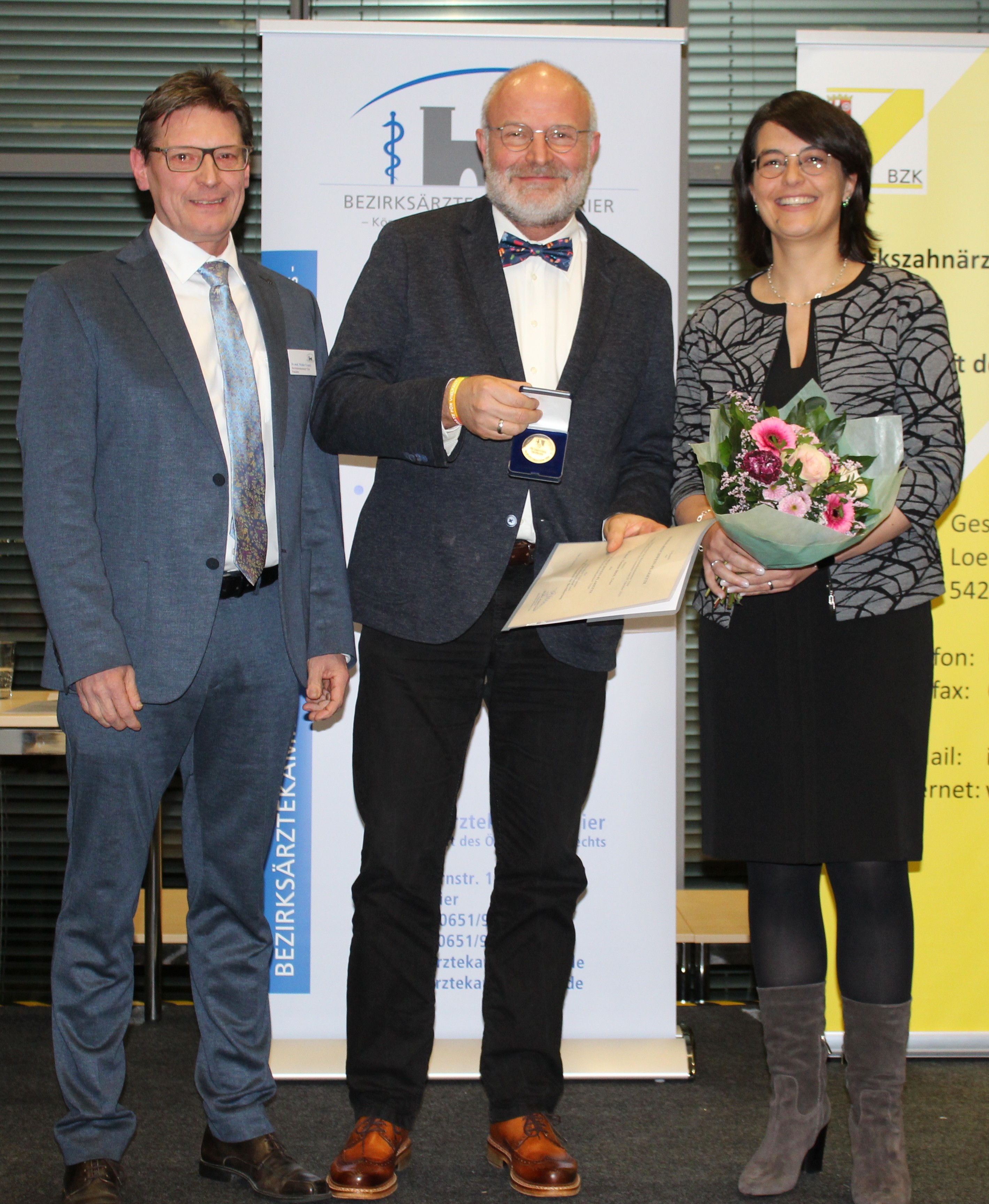 Herr Dr. Walter Gradel, Präsident der Bezirksärztekammer Trier, Dr.med. Thoams Böck und Frau Mariza Oliveira Galvao, Vizepräsidentin.
